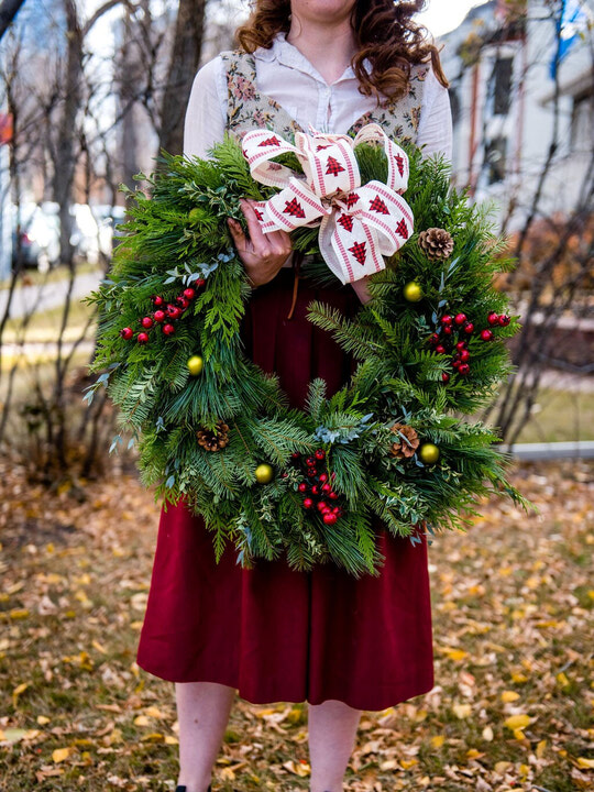 The smell of fresh evergreens is abundant in these hand-made in store creations. Wreaths left outside will last months! Our little elves are working overtime- decor colors can be customized to match your preferences.
