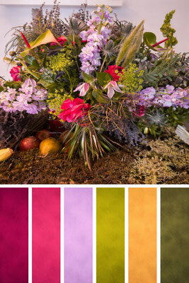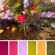 For couples drawn to depth and authenticity, Earthy Vibrancy offers a more nuanced alternative to traditional wedding palettes. Rather than relying on simple brights, this direction leans into complex, layered tones. Ochre, olive, muddy blue, deep plum. Colours that feel grounded, painterly, and rooted in the landscape.