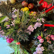 How we’ll style it: Expect to see mossy foundations that anchor the design to the surface, paired with sweeping, irregular lines. We’re creating meadow-like clusters and "pockets" of blooms that look unforced—the ultimate "I-walked-out-back-and-picked-this" fantasy, curated with a discerning, artistic eye.