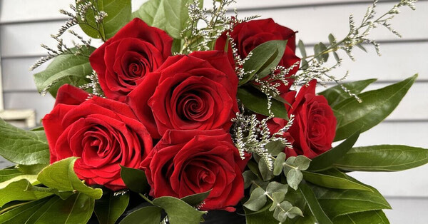 Bursting with colour and charm, this half-dozen bouquet of red roses is sure to light up any room. Whether you're celebrating a birthday, congratulating someone special, or simply showing you care, these vibrant blooms paired with fresh greenery are a delightful way to share your feelings.