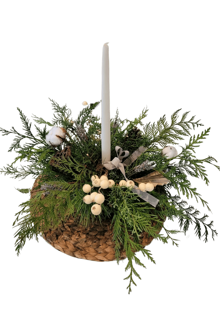 This centrepiece contains beautiful rustic elements but neutral tones remains simple and elegant.