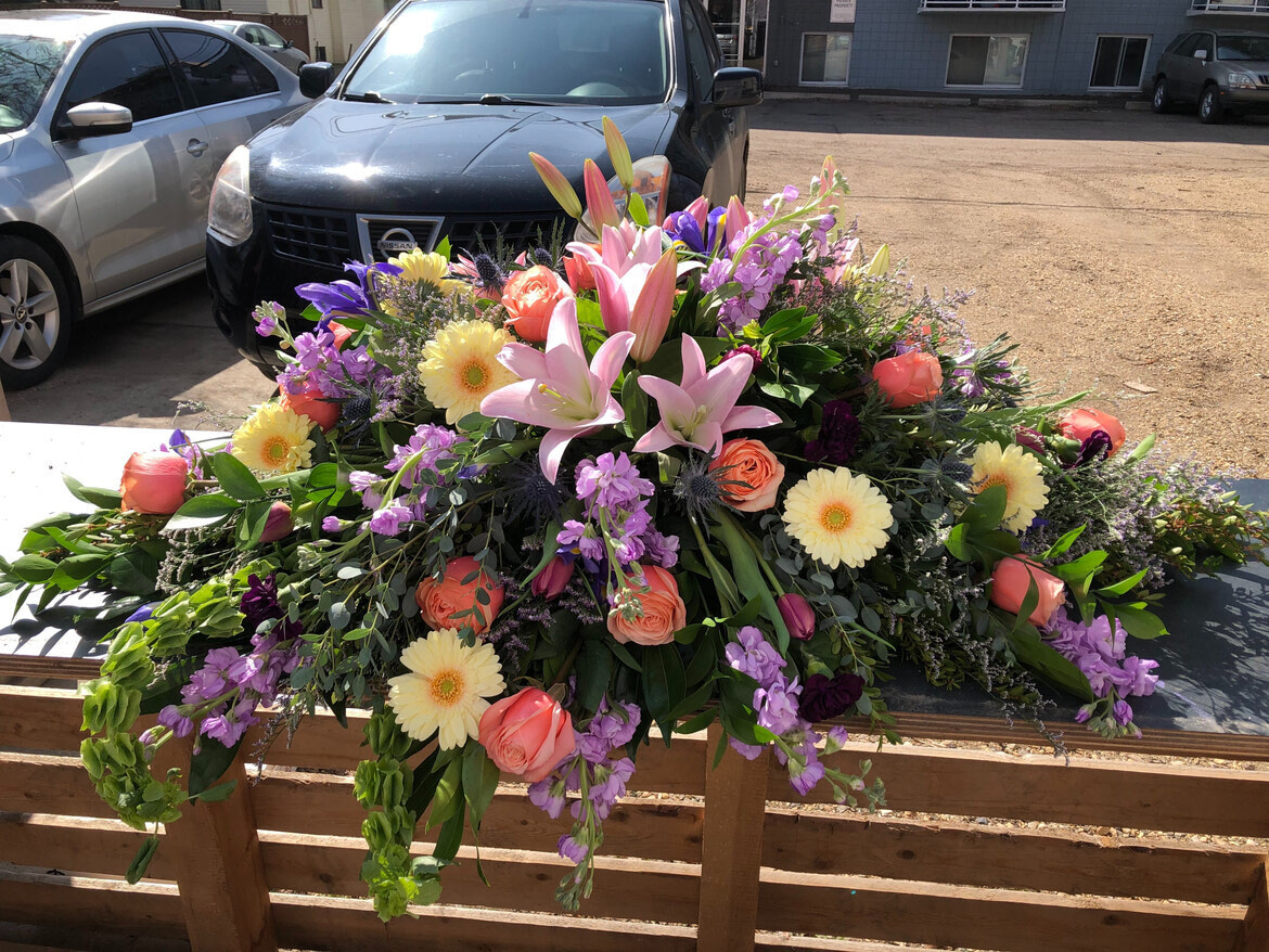 This meadow spray will be sure to bring sweet smells of nature to send comfort to all those who attend the service.