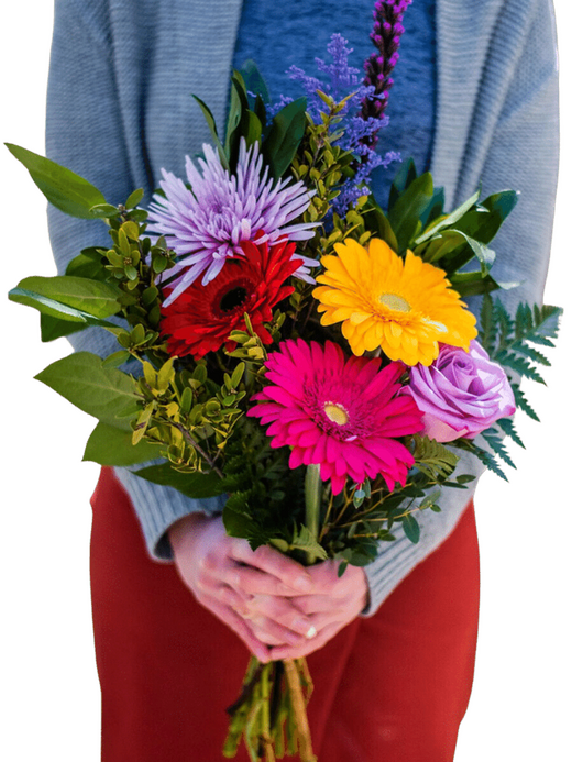 Fresh, fun, and full of personality, this hand-tied bouquet features a cheerful mix of blooms, lush greenery, and a special handcrafted touch. Each bouquet includes a locally made crochet floral accent, adding something truly unique to your gift.