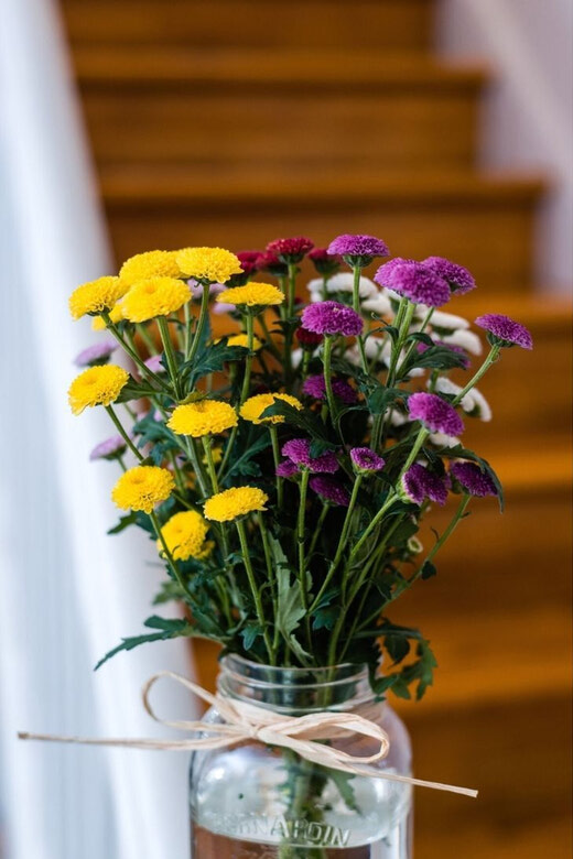 Please note that due to high volumes, this arrangement will look a little different. This hand-painted mason jar filled with fresh seasonal blooms is larger and has more unique blooms of fresh flowers. Flowers will be based on seasonal availability.