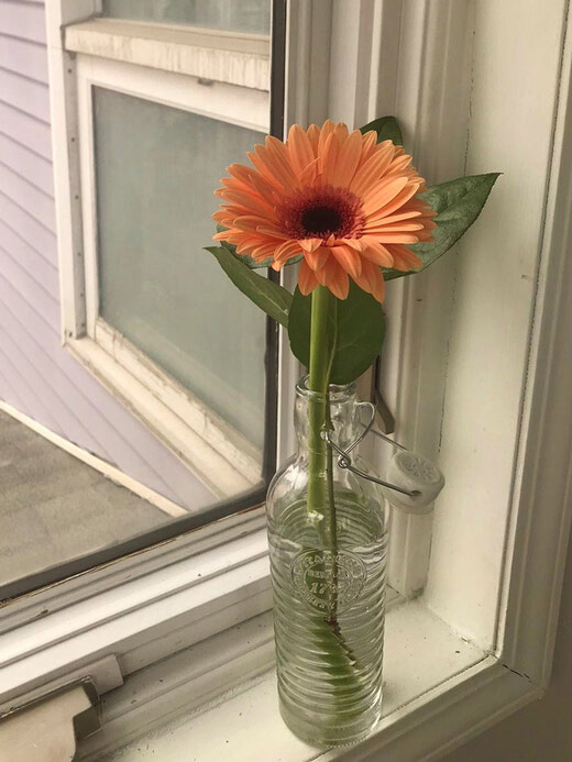 A simple, assorted bottle with a colourful gerbera daisy for a desk. Adding in a little bit of eucalyptus to make their day smell great!!