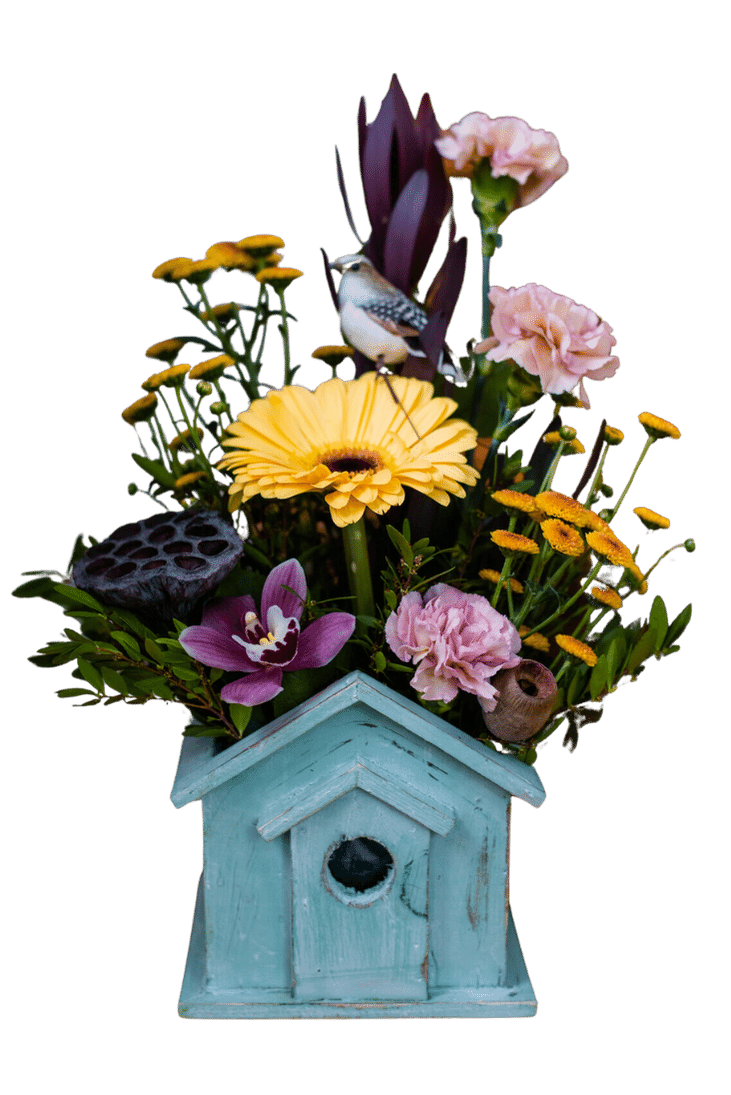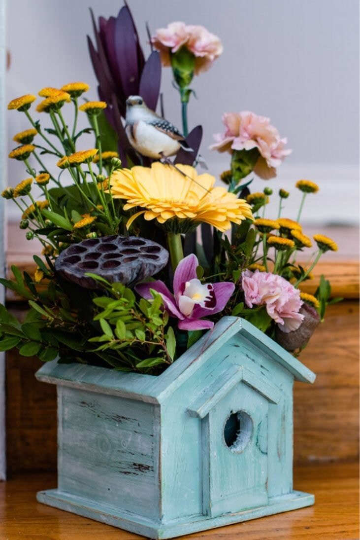 **Birdhouses come in pale green, pale pink and pale yellow with flowers to match. These little pastel birdhouses are a perfect gift for any occasion. They have lots of fun textures and can be reused. Colours may vary. Please make notes.