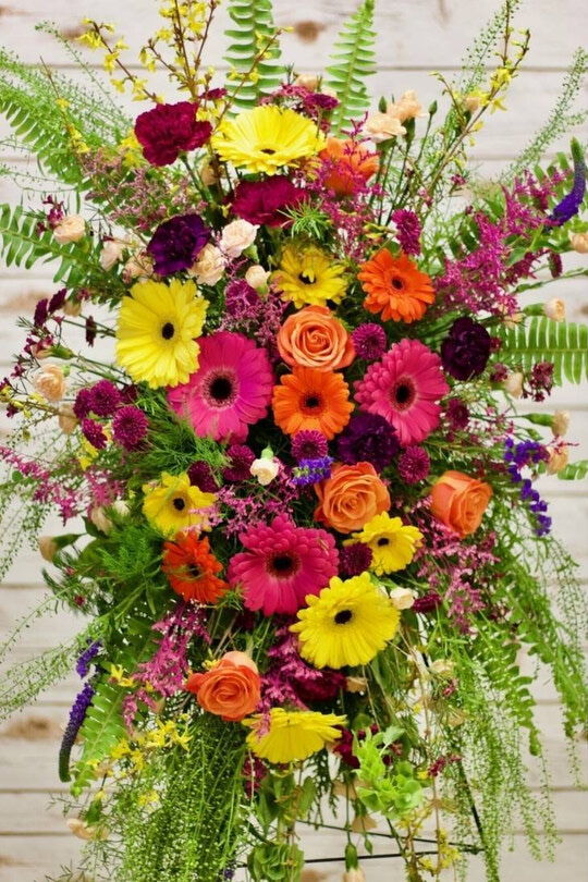 Lovely spray with brighter colours and a more modern feel to be sent as a spray on a stand.
