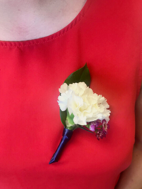 This simple carnation boutonniere comes in almost any colour. It is very hardy and will hold up during any weather. Let us know your colour preferences and we're happy to accommodate!