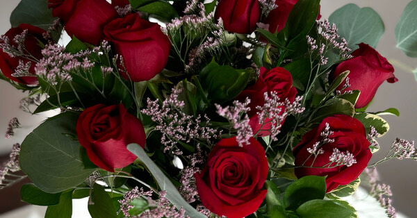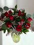 Expertly designed by our skilled florists, each rose is carefully selected for its deep crimson hue and flawless petals. Nestled in fresh greenery, this arrangement exudes timeless elegance and is sure to leave a lasting impression.