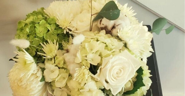 A classically romantic arrangement of whites and greens.
