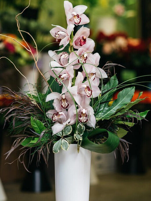 An elegant upgrade to our orchid elegance. This mini cymbidium orchid comes in a variety of natural, soft colours. Great for an office, hospital or home.