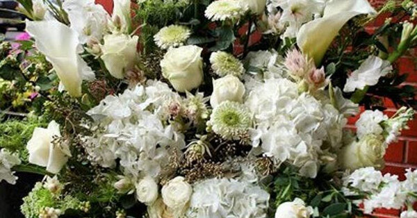 This lush, monochromatic arrangement is suitable for a variety of occasions. It is bursting with luxurious white flowers such as Hydrangeas, Calla Lilies, Stock, Roses and other seasonal blooms. Flower varieties vary with availability.