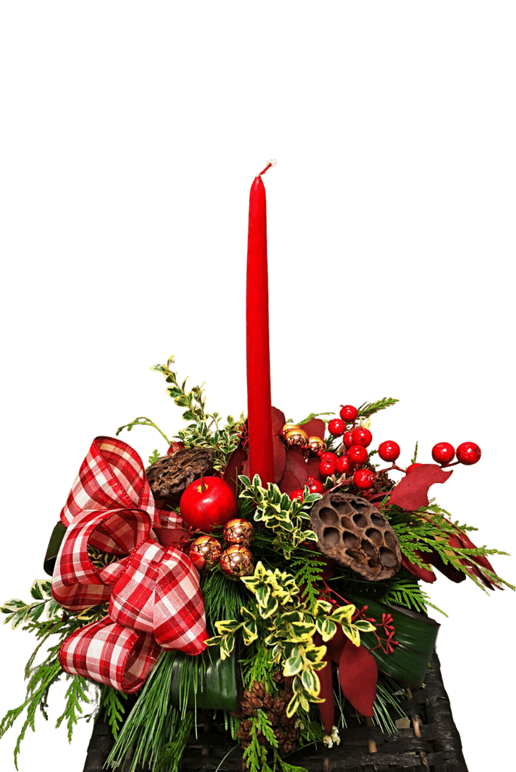 Long lasting with pops of red to make it festive. These lotus pods can be taken out and used in other dried flower arrangements around your house.