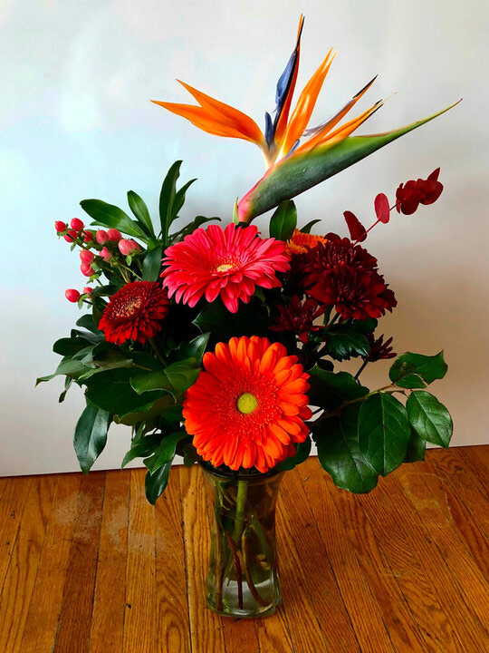 You don't have to always have a large arrangement to have a tropical feel. This sweet medium sized bouquet will be great for any occasion.