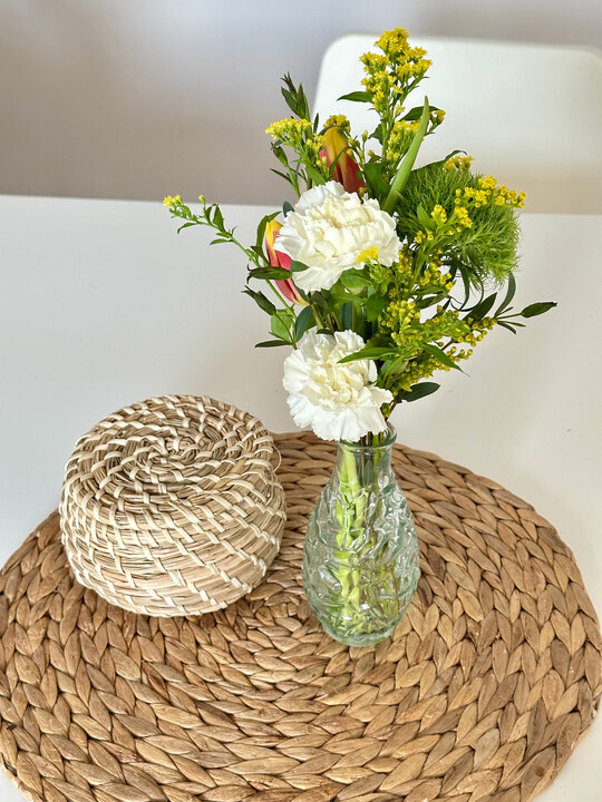 These sweet little bud vases come with different springy flowers. Each bottle will be unique and special! Perfect to say "I appreciate you!"