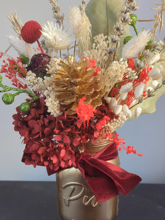 A festive mini mason jar filled with dried holiday blooms --- the sweetest little long-lasting gift for anyone on your list. Hand-crafted with love and sprinkled with BC lavender for that cozy Christmas scent... your room will smell absolutely magical!