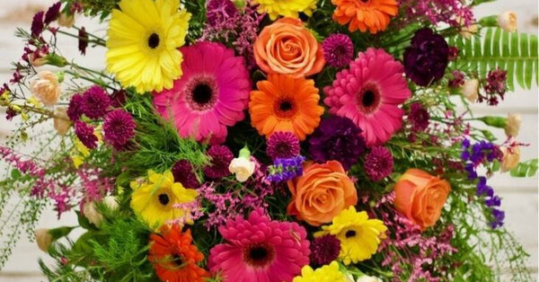 Lovely spray with brighter colours and a more modern feel to be sent as a spray on a stand.