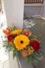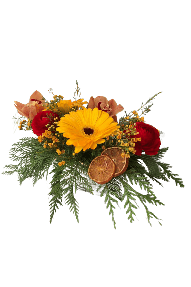Add some bright yellow flowers to add a fresh spin on the traditional gold and red.