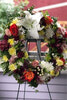 This 15" wreath featuring yellows and burnt orange is a lovely bright wreath for a celebration of life. Specify a colour theme and we can customize it for you.