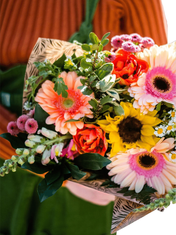 This Goldilocks Bunch will come with a lovely assorted spring mix of flowers, "not too big, not too small." No two are the same, as they are all hand-made in-store by our local Floral Designers. Please make notes if you have specific colours in mind.