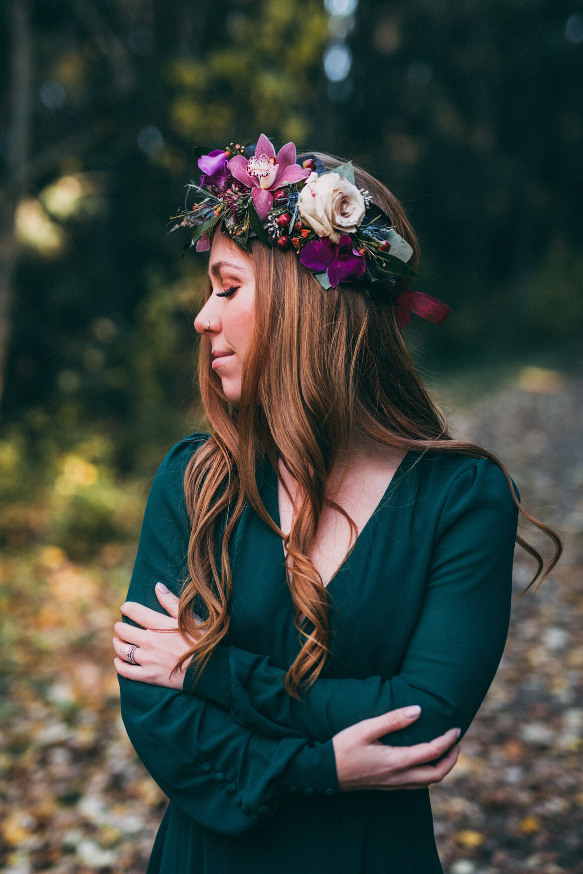 This lush floral crown can be customized to fit your colour palette. For your graduation, why not be a princess and wear a crown? For your special photo shoot, why not be the Queen?