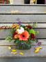 This gorgeous fall bouquet features a little white hand crocheted pumpkin. It makes the perfect keepsake!