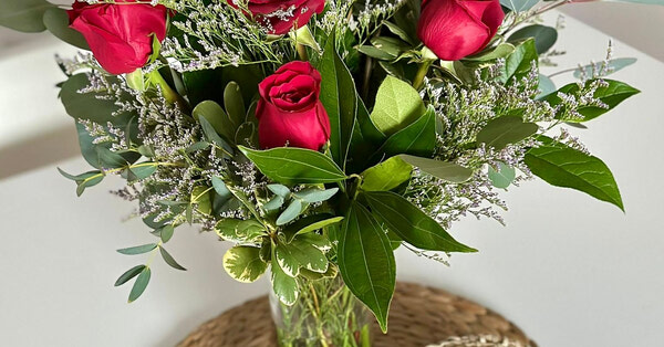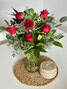 A timeless expression of love and admiration, our six red roses in a vase are the perfect way to show you care. Beautifully arranged with fresh greenery in an elegant glass vase, this classic bouquet makes a meaningful statement for Valentine's Day, anniversaries, or just because.