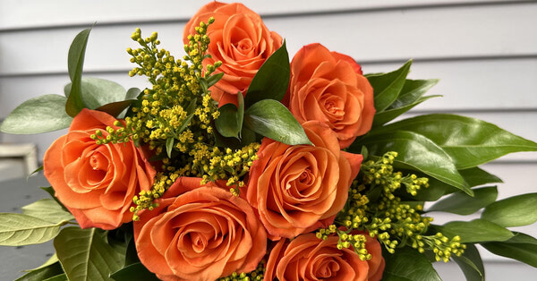 Choose from red, white, orange, or pink roses in this half-dozen arrangement. Just let us know your favourite colour, and we'll create it just for you, complete with a mini card for your heartfelt message.