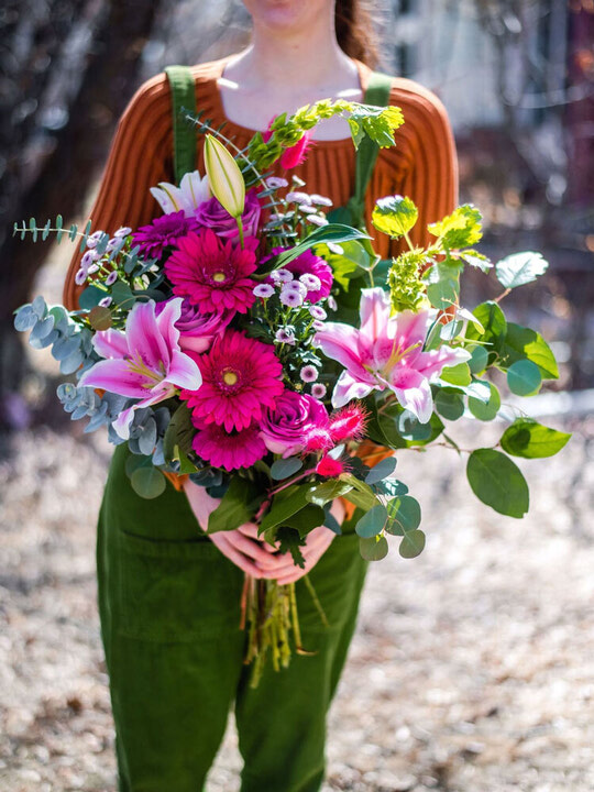 Meet 'The Justine' Bouquet: An exuberant and eclectic mix of bold colors and textures that mirror the creativity and spirit of Justine Ma.