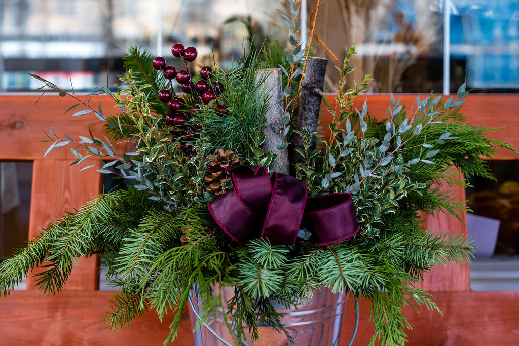 - Seasonal Greenery & Decor: Choose from an array of high-quality greens, berries, pinecones, and other seasonal accents to create a full, vibrant planter.