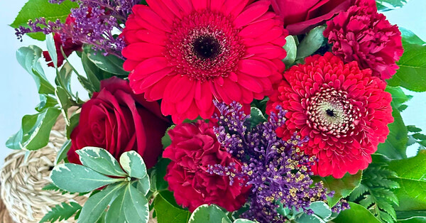 Infuse any space with the warmth and allure of our Mediterranean Muse bouquet. A harmonious blend of deep-red roses, bold gerbera daisies, rich carnations, and delicate accents of purple blooms evokes the lush charm of a Mediterranean garden. Carefully arranged with lush greenery, this bouquet is perfect for celebrating life's special moments or simply adding a vibrant touch to your home.
