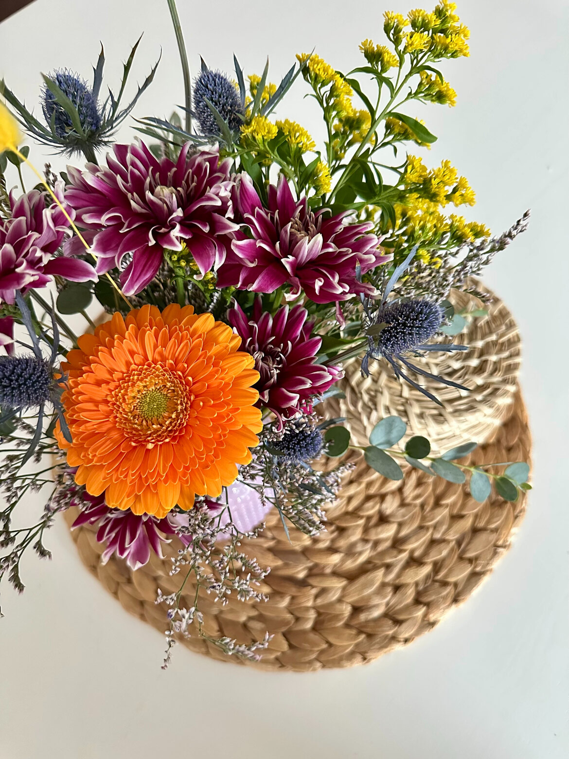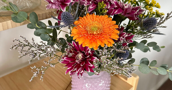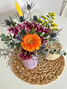 Please note that due to high volumes, this arrangement will look a little different. Mini mason jar with some seasonal blooms such as pomponi mini gerbera daisy, waxflower and carnations to keep it nice and long lasting.