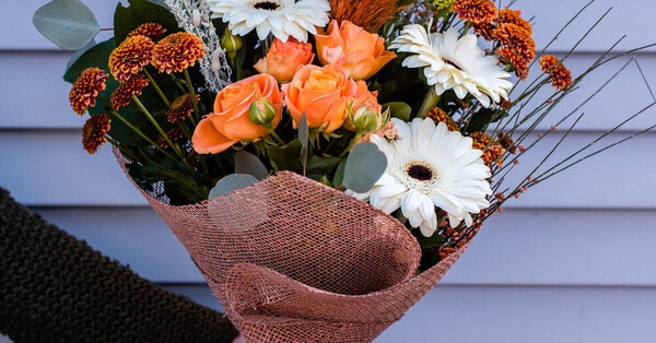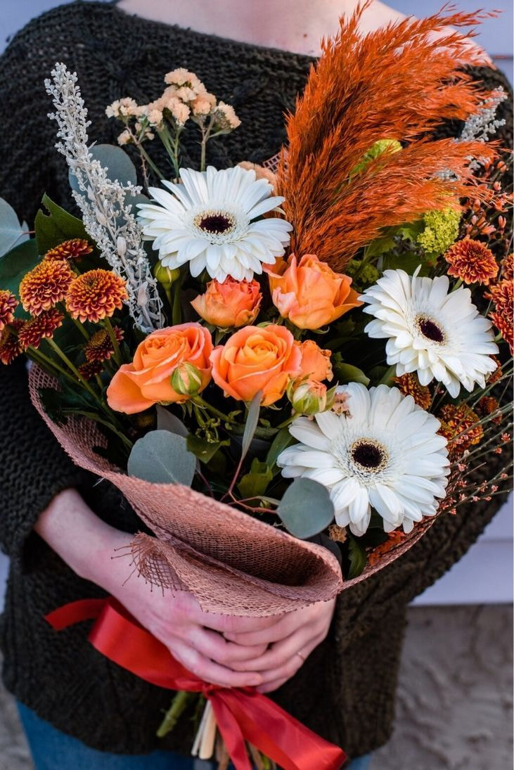 These contrasting colours of oranges and whites are perfect for a fun fall bouquet.