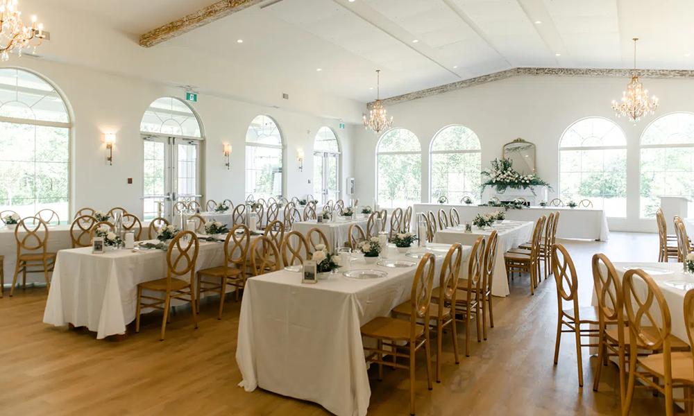 Getting married in the river valley? Soft neutrals with pops of greenery work beautifully. Backyard wedding? Try fresh summer colours like peach, coral, lemon yellow, or lavender. Hosting your reception at an industrial venue with outdoor space? Add contrast with bold blooms and structured design.