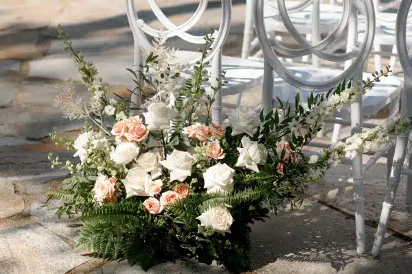 If you’re getting married outside, your flowers should feel like they belong in that space. Think flowy arrangements with movement, natural textures, and colour palettes that complement the surroundings.