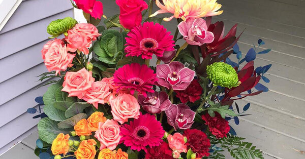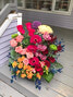 A striking display of towering orchids, roses, and bold seasonal blooms in vivid, eye-catching colours. Designed to impress, this arrangement is perfect for making a grand statement.