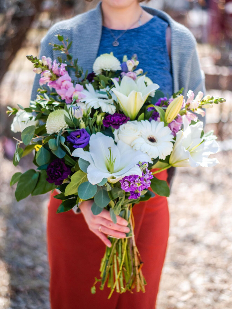 Make their jaw drop with this large hand-tied bouquet filled with gorgeous and gardeny blooms!