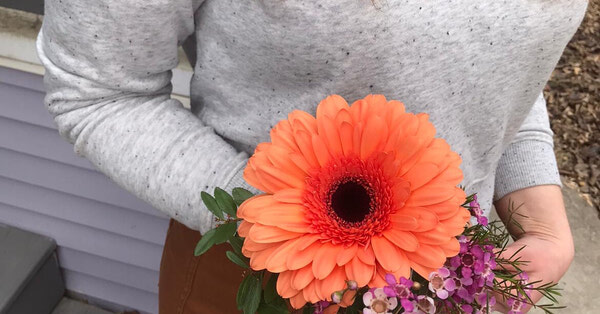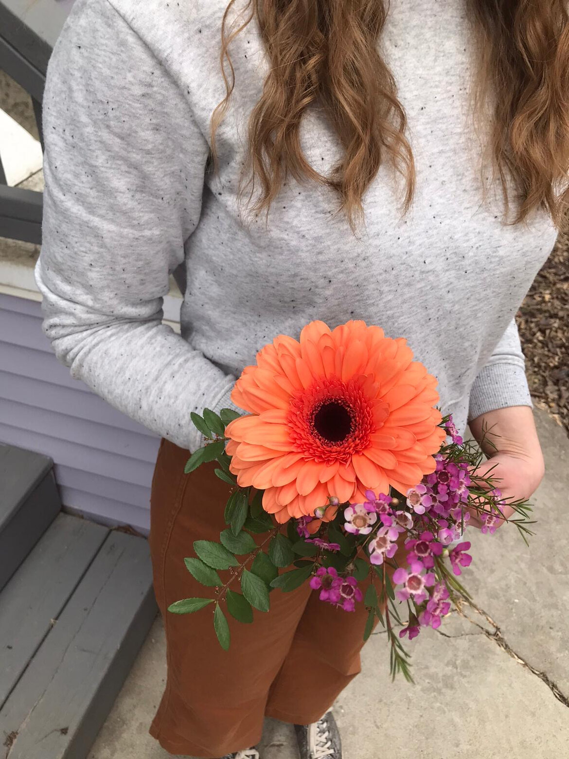 A single wrapped flower with a little filler and green can brighten up any occasion or be a simple thank you.