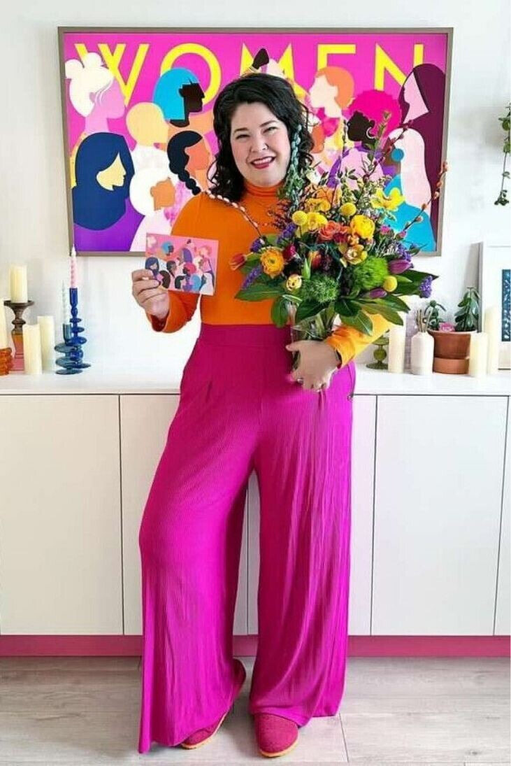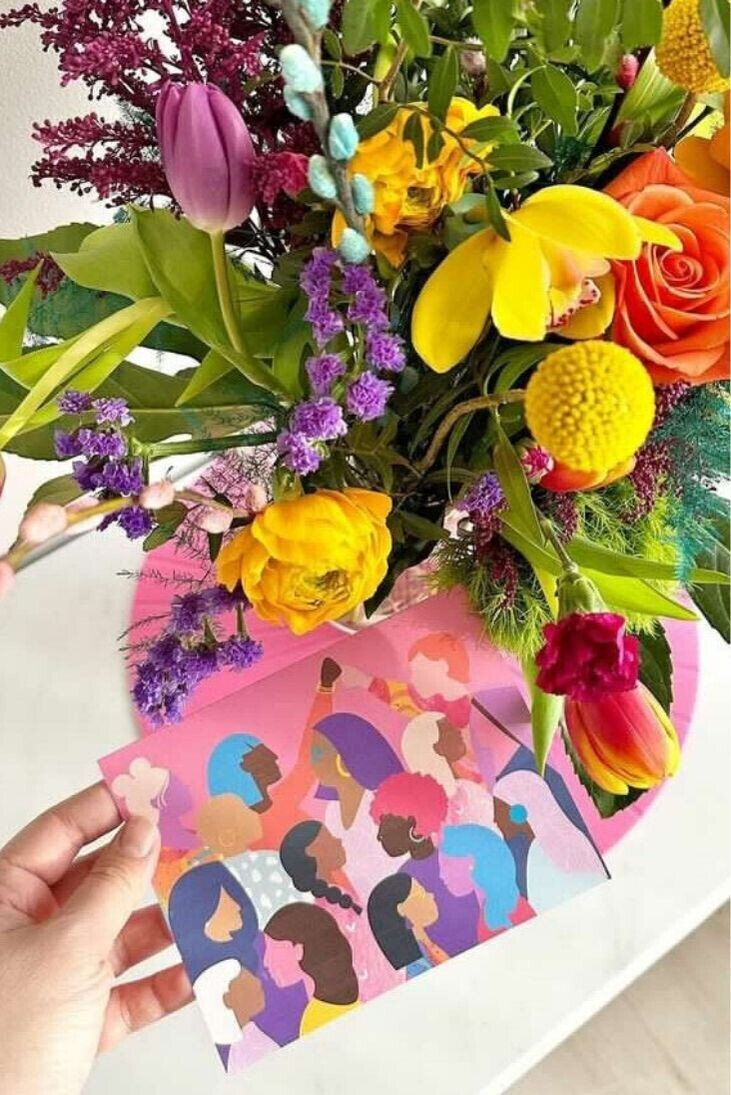 Meet 'The Justine' Bouquet: An exuberant and eclectic mix of bold colors and textures that mirror the creativity and spirit of Justine Ma. This bouquet is a lively collection of tulips, roses, and exotic orchids, complemented by playful pussy willow and whimsical greenery. It's a hand-held celebration, artfully designed to bring joy and a splash of vivacity to any space or occasion. *Hand-tied bouquet