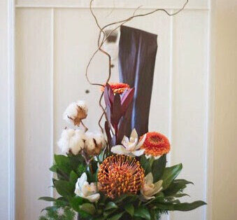 A unique arrangement with cotton, pincushion protea, and pomponi gerbera daisies will bring a little bit of uniqueness to anyone's day.