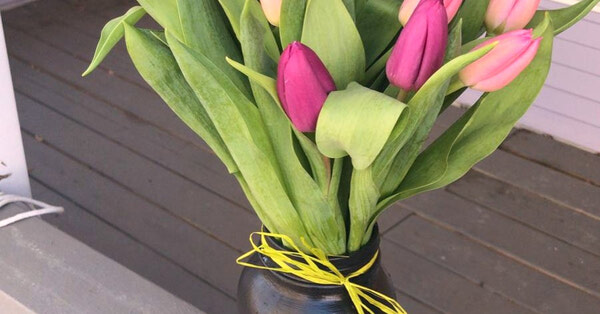 A petite yet elegant arrangement of fresh tulips, beautifully displayed in a glass vase. This charming bouquet adds a pop of color to any space and makes a thoughtful gift for someone special.