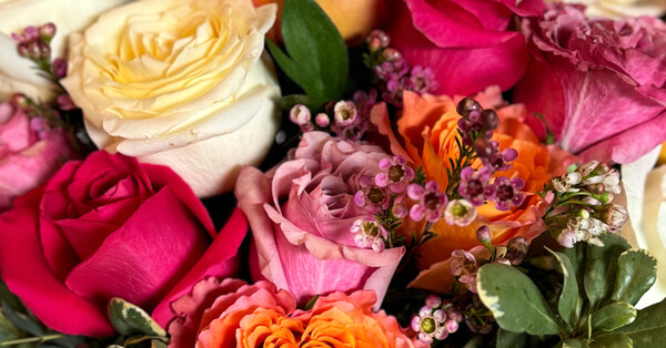 Brighten someone's day with two dozen premium long-stemmed roses in a stunning mix of colours, this bouquet is a celebration of joy, beauty, and love. Thoughtfully arranged in a classic glass vase, each rose is hand-selected to create a dazzling display of vibrant hues and lush greenery.