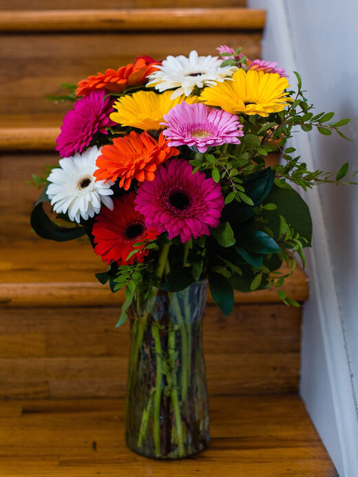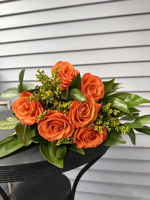 Choose from red, white, orange, or pink roses in this half-dozen arrangement. Just let us know your favourite colour, and we'll create it just for you, complete with a mini card for your heartfelt message.