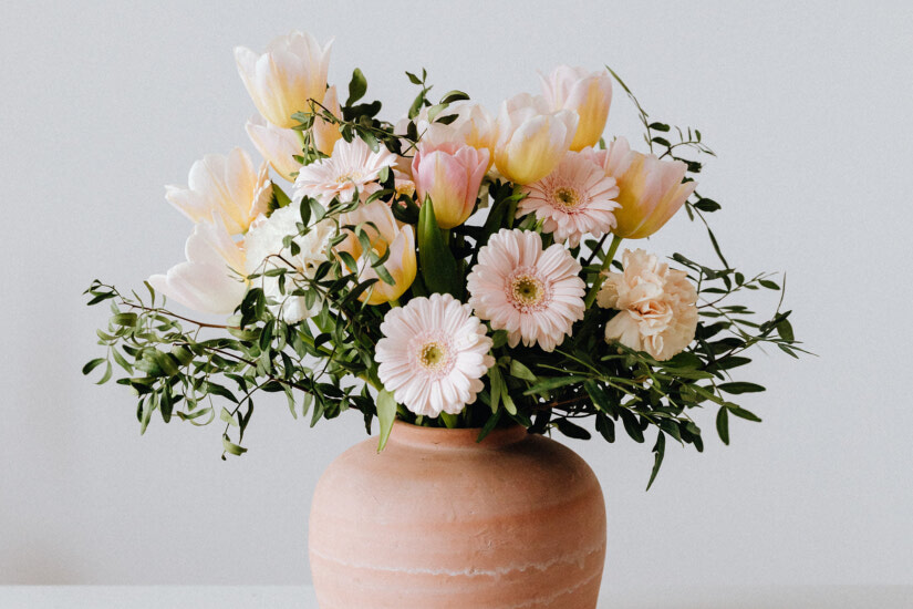 • Dried flowers with fresh blooms for a timeless, romantic feel